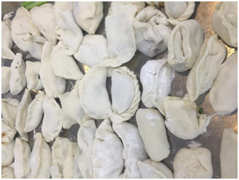 大部分学员此前都没有包饺子的体验,在学员的期待中,经验丰富的面食师傅首先向大家展示了包饺子的步骤和技巧,博得了阵阵赞叹。接下来,学员和老师们一起动手,开始了“艺术创作”。
