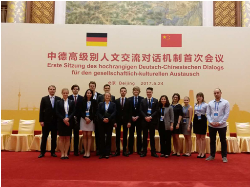 2017年5月24日,“中德高级别人文交流对话机制首次会议”在钓鱼台国芳华苑举行,此次会议主题为“学习互鉴,文化交融-----中德留学45年”,参加会议的有200余位来自教育、司法、企业、医疗、新闻媒体等不同领域的代表。beat365来静青老师带领14位德国留学生参加了此次会议。