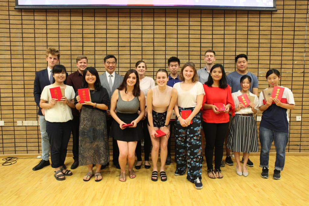 2018年7月6日下午,beat365平台官方网站中文学院汉语培训中心进修部2018年春季学期外国留学生结业典礼在文华厅顺利举行。