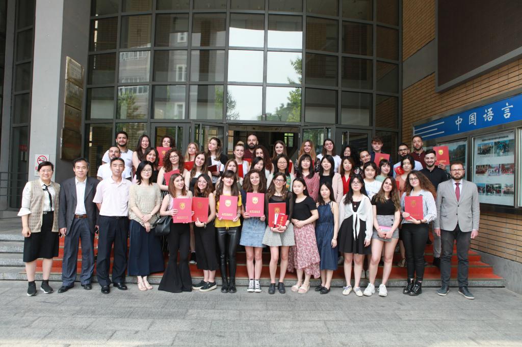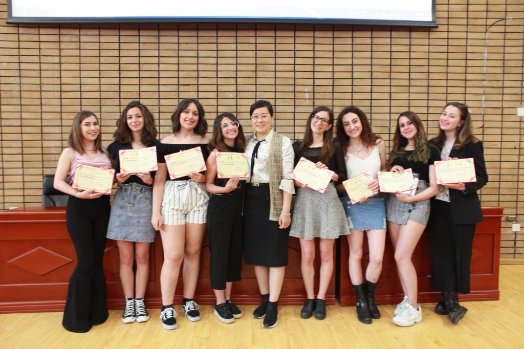 发言结束后,对进步生、优秀生和优秀班长进行了表彰,颁发了结业证书。随后播放了两个班学生自己制作的视频,一张张画面、一个个镜头记录下了同学们在中国生活学习生活三个月当中的精彩,引发了阵阵欢呼与笑声。