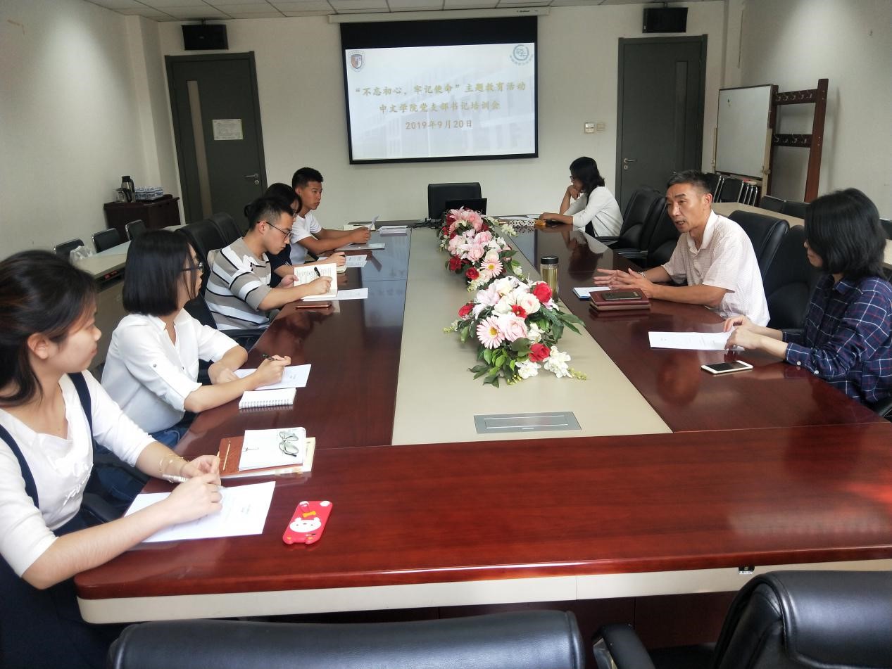 学校“不忘初心、牢记使命”主题教育动员部署会之后,中文学院分别于9月17日和9月20日召开党政联席会议和党支部书记培训会,学习贯彻学校会议精神,动员落实“我和我的祖国”主题党日活动。学院理论学习中心组成员和学生党支部书记、教工党支部书记、辅导员参加上述活动。