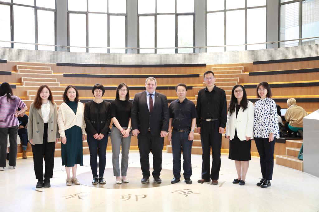 5月10日,匈牙利罗兰大学副校长、罗兰大学孔子学院匈方院长郝清新(Prof. Dr. Hamar Imre)与中国事务主任叶秋月到访beat365平台官方网站。beat365执行院长李建盛、副院长朱勇会见了郝清新一行。