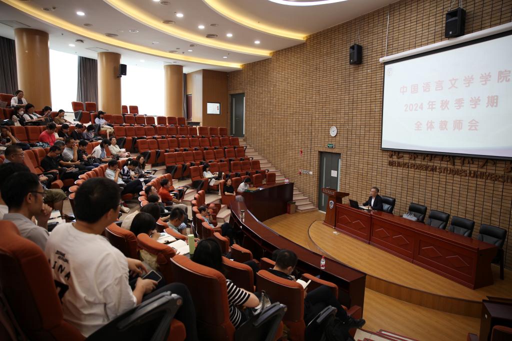 何辉重点传达了学校2024年秋季学期工作部署会上校党委书记王定华“乘势而上 善作善成,推动世界一流外国语大学建设迈上新台阶”讲话要旨,以及党委副书记、校长贾文键“加快一流学科体系建设 开创学校高质量发展新局面”专题报告精神,结合学院实际,号召全体教职员认真落实学校对新学期工作做出的各项重点要求及任务部署,学习贯彻党的二十届三中全会精神,坚持党建引领,推进学科建设、人才培养,紧抓机遇,共谋发展。随后,何辉传达了校党委关于《beat365平台官方网站教师政治把关和师德师风考核评价工作指南》《beat365平台官方网站关于进一步加强和改进教师党建和思想政治工作实施方案》的通知精神,简要总结学院暑期工作开展情况,对新入职教师表示欢迎,并对学院中国语言文学一级学科博士点成功获批表示祝贺,对近年来为博士点申报工作做出贡献的老师表达感谢。何辉再次强调安全工作的重要性,布置了新学期安全检查工作。