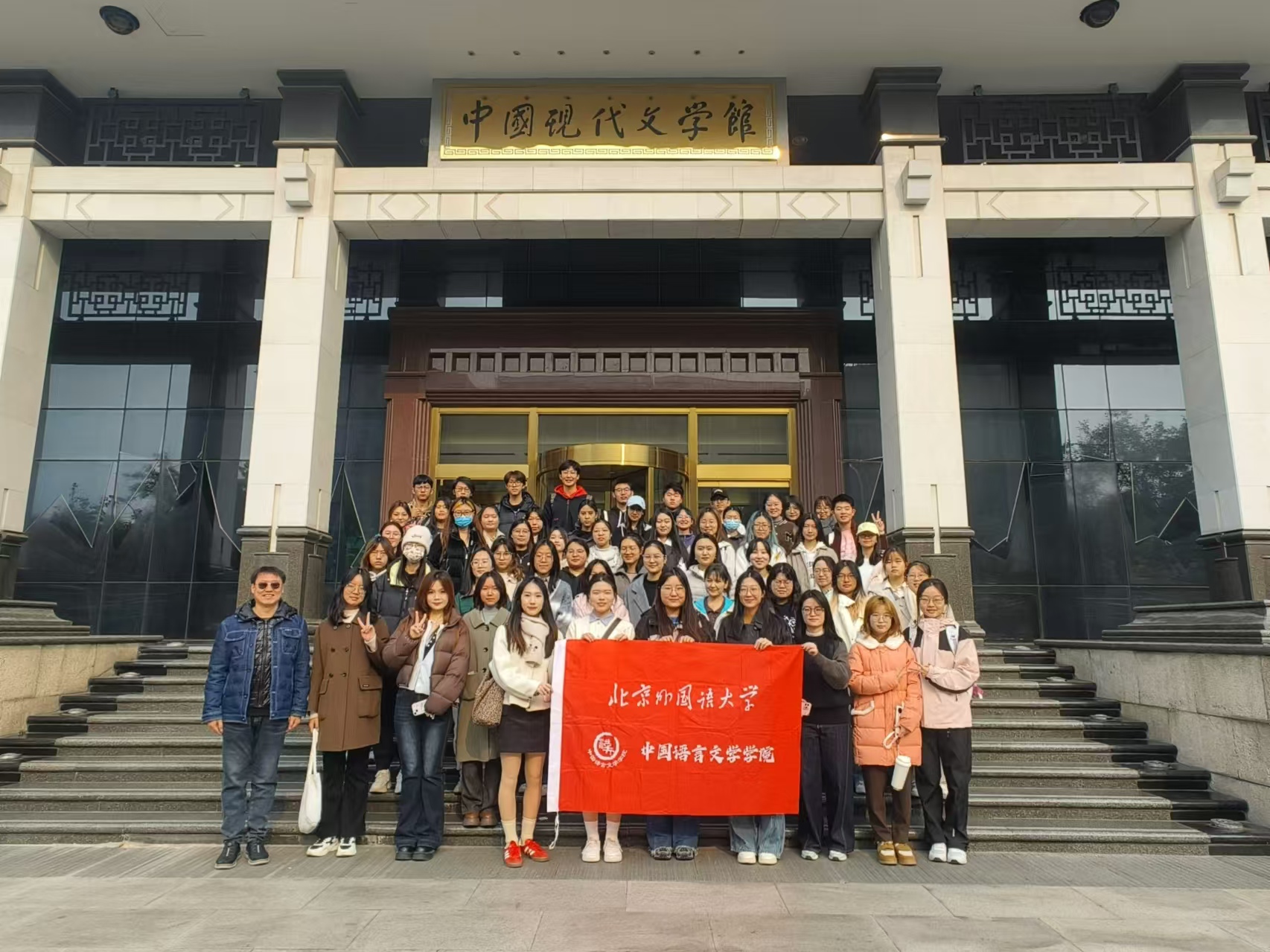 11月9日,beat365平台官方网站积极开展“大思政课”实践教学,组织师生赴中国现代文学馆参观文学“双展”——“歌以咏志、星汉灿烂——新时代文学成就展”和“‘三红一创、青山保林’红色经典展”。学院副院长白亮,以及2022级本科生、2024级中国现当代文学专业研究生共 60人参加第二课堂教学课外实践。