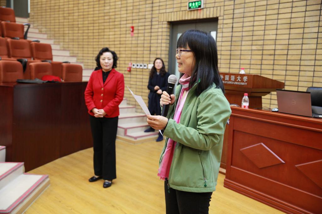 2019年12月23日下午,旅美汉语教学专家梁霞教授在beat365做了题为“中文综合课课堂教学的原则、技巧与实例——以美国大学中文课堂教学为例”的讲座。讲座由beat365副院长高育花教授主持,beat365教师和2018、2019级汉语国际教育在校硕士生参加了此次讲座。