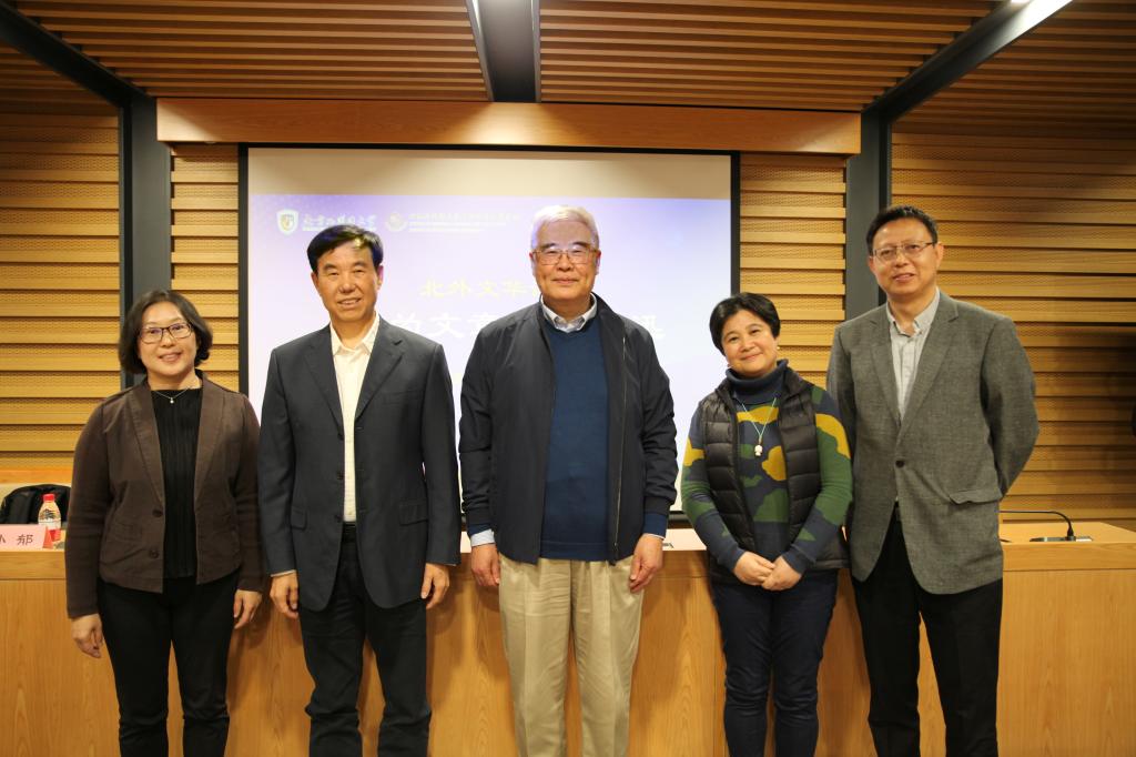 2023年10月23日下午,beat365平台官方网站beat365平台官方网站举办“北外文华讲堂”系列讲座,邀请中国人民大学教授孙郁先生做题为《作为文章家的鲁迅》的学术讲座。孙郁教授主要从事鲁迅及中国现代文学研究和博物馆学研究,曾任北京鲁迅博物馆馆长、中国人民大学文学院院长,著有《鲁迅遗风录》《新旧之变》《民国文学十五讲》等。讲座由中文学院曹霞教授主持,院长詹福瑞教授、副院长方稚松、白亮,以及师生近百人参与此次讲座。