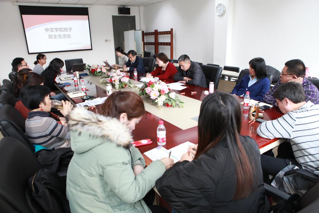 2月20日下午,中文学院领导班子民主生活会在中文学院教学楼204会议室召开,刘厚广、张晓慧、高育花参加生活会,党总支委员、教师党支部书记、师生代表参加会议。